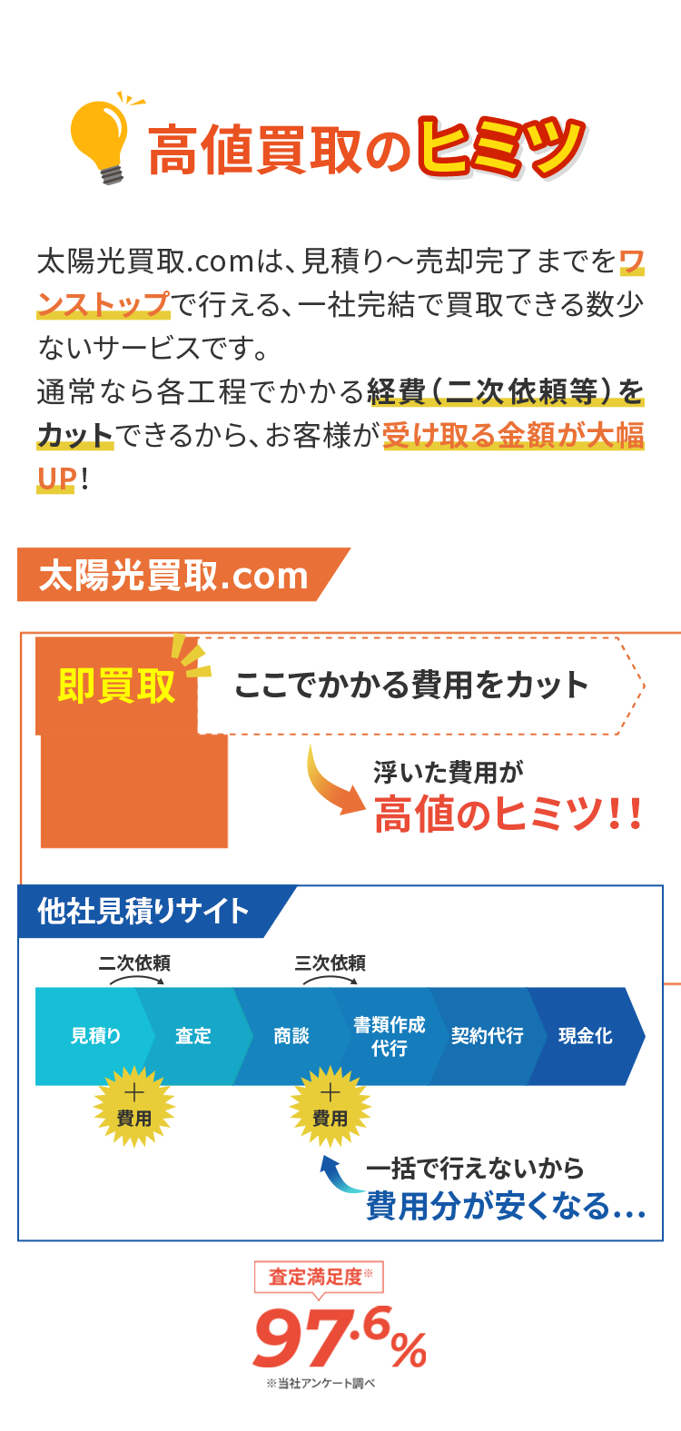 太陽光システムの状況や売電実績をもとに概算でのご提示を致しますので、ご検討いただき、希望条件の相談や、相場の確認だけでも問題ございません。